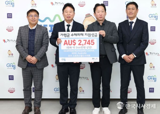 가평군과 호주 스트라스필드시는 2011년 8월 자매결연을 맺은 이후 문화, 체육, 교육, 보훈 등 폭넓은 분야에서 교류를 이어오며 우호를 다져왔다. 앞서 지난 10월에도 호주 시드니 등지에 거주하는 교민 34명이 자발적으로 성금을 모아 가평군청을 직접 방문해 전달한 바 있다.