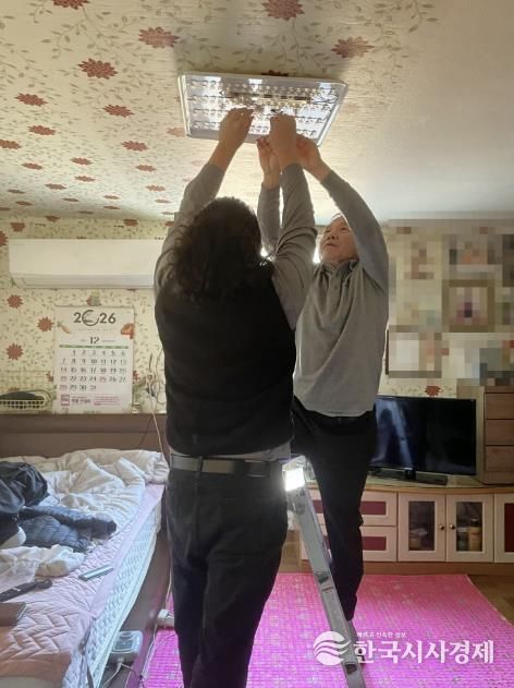 한국시사경제 문화팀 | 생연1동 지역사회보장협의체는 지난 5일 홍민섭 주민자치회 부위원장의 재능기부로 장애 등으로 거동이 불편한 2가구에 원격 조정 스마트 LED 조명등을 설치하는 스마트 복지서비스 안전 사업을 실시했다고 밝혔다.