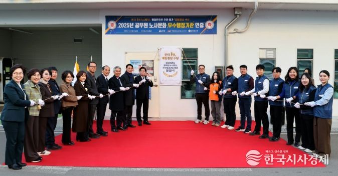 한국시사경제 전남취재본부 | 고흥군은 지난 8일 전국공무원노동조합 고흥군지부 사무실 앞에서 ‘2025년 공무원 노사문화 우수행정기관 대통령상’ 수상에 따른 인증 현판식을 개최했다고 밝혔다.