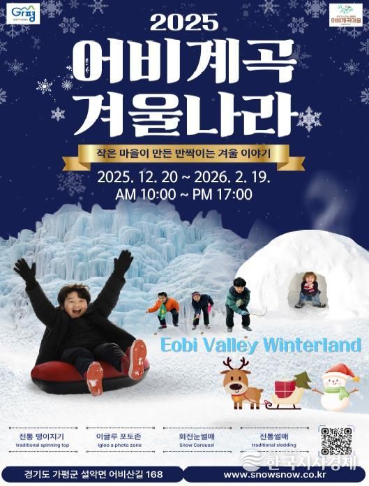한국시사경제 경기북부취재본부 | 가평군은 이달 20일부터 시작하는 ‘2025 어비계곡 겨울나라’ 축제와 연계한 겨울테마여행 철도관광상품을 출시했다고 11일 밝혔다. 군은 코레일관광개발㈜과의 업무협약을 기반으로 아이티엑스(ITX)-청춘 열차를 활용한 테마형 관광상품을 지난 4월부터 추진해 왔다.