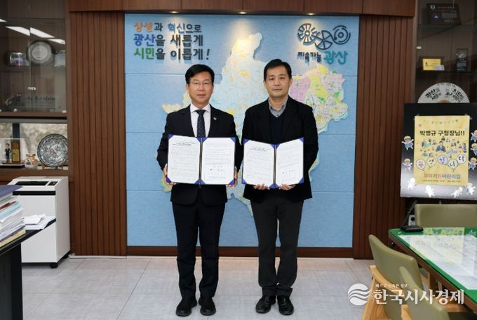 한국시사경제 광주취재본부 | 광주 광산구가 11일 구청장실에서 자원선순환 체계 구축과 탄소중립 실현을 위해 ㈜미래에코에너지와 ‘커피찌꺼기 재자원화’ 업무협약을 체결했다.