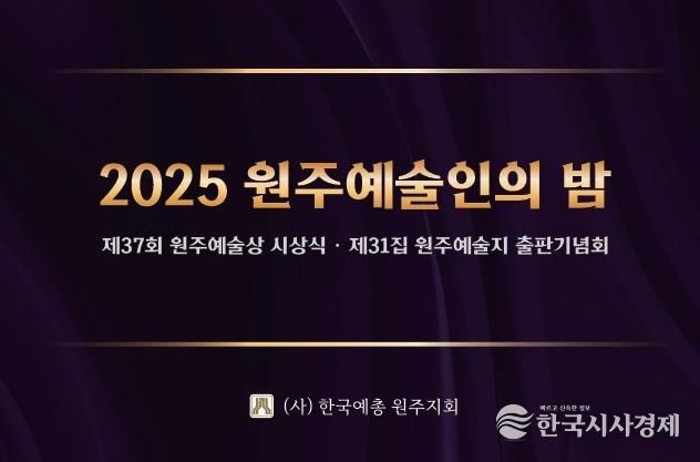 한국시사경제 이정이 기자 | 지역 문화예술 발전에 기여한 예술인들의 공로를 기리고, 원주의 예술적 성과를 공유하기 위한 ‘제37회 원주예술상 시상식 및 제31집 원주예술지 출판기념회’가 오는 16일 오후 5시, 빌라드아모르에서 개최된다.