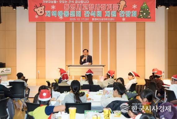 한국시사경제 경남취재본부 | 통영시는 지난 17일 RCE세자트라센터에서 관내 12개소 지역아동센터 아동 100여 명과 통영시고향사랑기금으로 지원하고 있는 ‘지역아동센터 간식비 지원사업 간담회’를 개최했다.