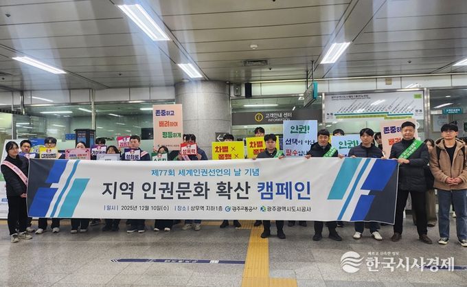 한국시사경제 광주취재본부 | 광주도시공사(사장 김승남)는 지난 10일 서구 상무역에서 광주교통공사와 합동으로 인권문화 존중 캠페인을 펼쳤다고 밝혔다.