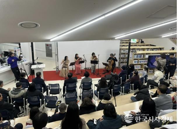 사회는 MBC 출신의 박혜진 아나운서가 맡았으며, 윤동주의 ‘서시’를 특유의 차분한 목소리로 낭독했다. 이어진 음악회 공연에는 바이올린 김지혜, 비올라 이수미, 첼로 어철민, 플루트 이지연으로 구성된 현악 4중주가 아름다운 공연을 선보였다.