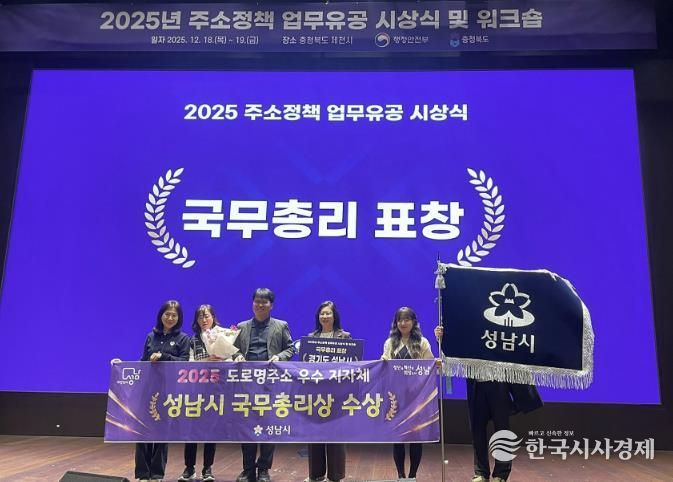 한국시사경제 경기취재본부 | 성남시는 행정안전부가 주관한 2025년 주소정책 업무 평가에서 도로명주소 활성화 분야 우수 지자체로 선정돼 국무총리 기관표창을 수상했다고 19일 밝혔다.