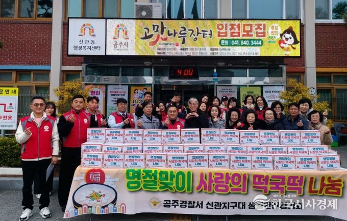 한국시사경제 김태훈 기자 | 공주시 신관동은 지난 20일 신관지구대생활안전협의회(회장 이정열)가 연말을 맞아 관내 경로당 24곳을 직접 방문해 떡국떡 3킬로그램씩을 전달하며 따뜻한 나눔을 실천했다고 밝혔다.