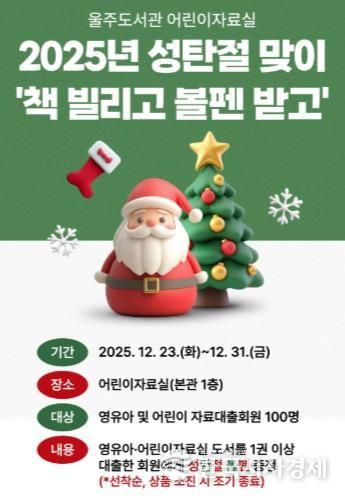 한국시사경제 울산취재본부 | 울산 울주도서관이 한 해를 마무리하는 12월을 맞아 어린이들을 위한 독서 행사와 지역 예술 동아리의 작품 전시회 등 다채로운 연말 프로그램을 운영한다.