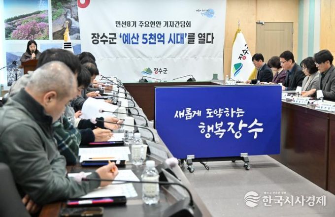 한국시사경제 전북취재본부 | 장수군은 22일 군 역사상 최초로 ‘예산 5천억 시대’를 맞아 장수군청 출입기자 간담회를 군청 회의실에서 개최했다.