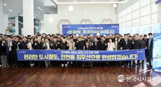 광주광역시는 이날 시청 시민홀에서 ‘광주도시철도 2호선 1단계 구간 도로개방 현장 확인’ 행사를 열고, 그동안의 공사 추진 경과와 현재 공정 현황, 향후 계획을 시민들과 공유했다.