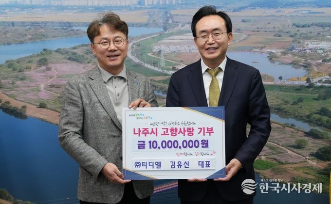 한국시사경제 권충언 기자 | 전라남도 나주시는 ㈜티디엘 김유신 대표가 지역 발전을 응원하기 위해 고향사랑기부금 1천만 원을 기탁했다고 22일 밝혔다.