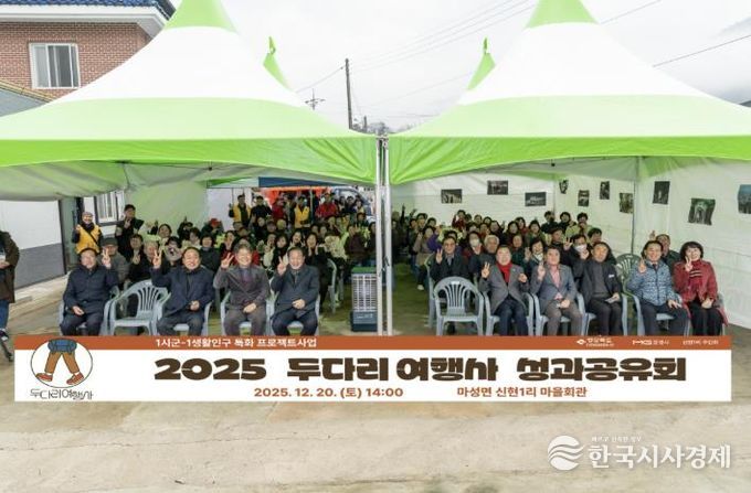 한국시사경제 이정이 기자 | 문경시 마성면 신현1리 주민회는 지난 20일 마을회관에서 사업 참여자와 신현1리 마을주민 등 100여 명이 참석한 가운데 2025년 1시군-1생활인구 특화 프로젝트의 일환으로 추진된 지역살이 프로그램‘두다리 여행사’ 성과공유회를 가졌다.