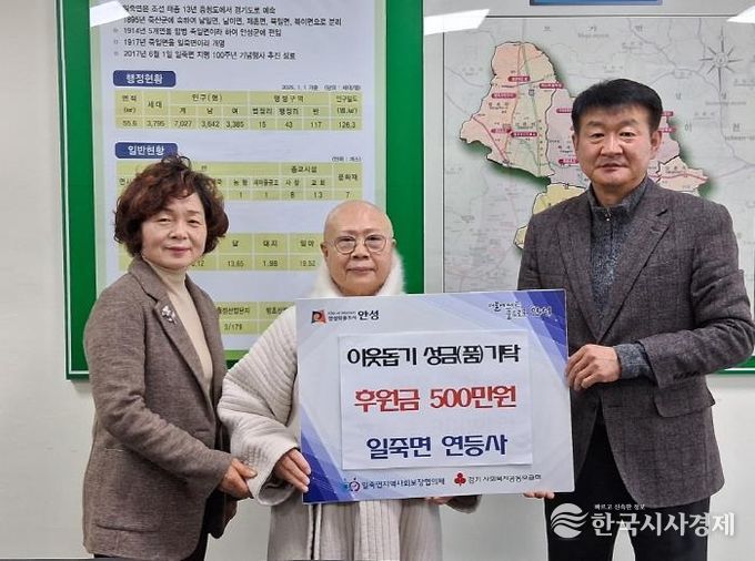 한국시사경제 경기취재본부 | 일죽면 행정복지센터는 지난 19일, 안성시 일죽면 화봉리에 위치한 연등사에서 저출산 가구 지원을 위해 500만 원의 기부금을 전달했다. 이번 기부는 지역 내 저출산 문제 해결과 아이 양육에 어려움을 겪는 가정을 돕기 위한 뜻깊은 자리로 마련됐다.