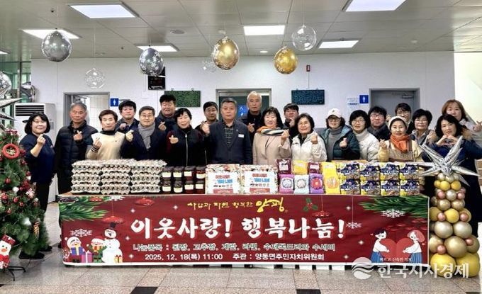 한국시사경제 기동취재팀 | 양동면 주민자치위원회는 지난 18일 양동면 주민자치센터에서 연말을 맞아 이웃사랑과 행복 나눔을 실천하기 위한 물품 나눔 행사를 가졌다.