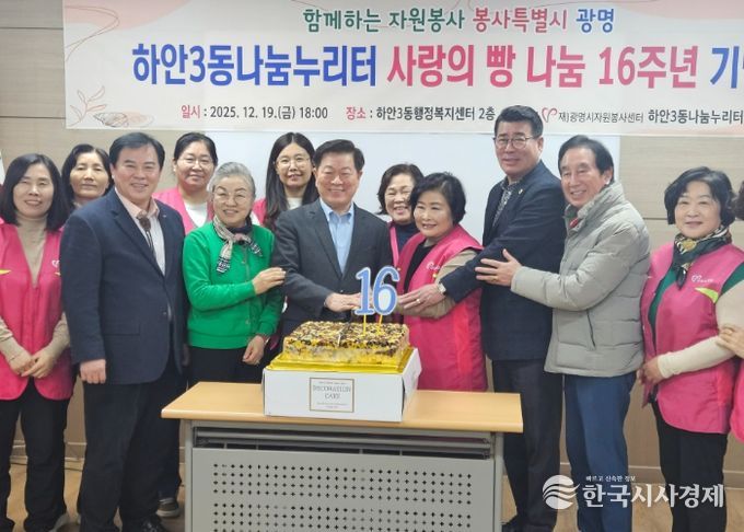 한국시사경제 경기취재본부 | 광명시 하안3동 나눔누리터는 광명시자원봉사센터, 하안3동 행정복지센터와 함께 지난 19일 하안3동 행정복지센터 2층 회의실에서 ‘사랑의 빵 나눔’ 16주년 기념식을 개최했다.