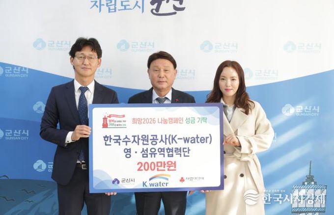 한국시사경제 전북취재본부 | 한국수자원공사 영·섬유역협력단이 연말을 맞아 취약계층과 따뜻한 정(情)을 나누고자 기부금 200만 원을 22일 군산시에 전달했다.