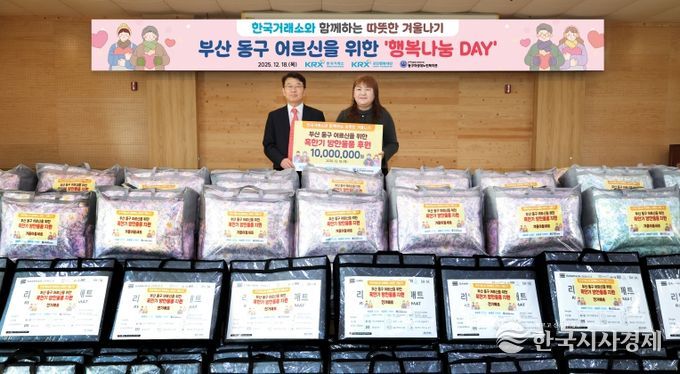 한국시사경제 부산취재본부 | 2025년 12월 18일, KRX국민행복재단(이사장 정은보)은 동구지역 어르신들의 따뜻한 겨울나기를 응원하며 동구자성대노인복지관(관장 이은숙)에 후원금 1,000만원을 기탁했다.