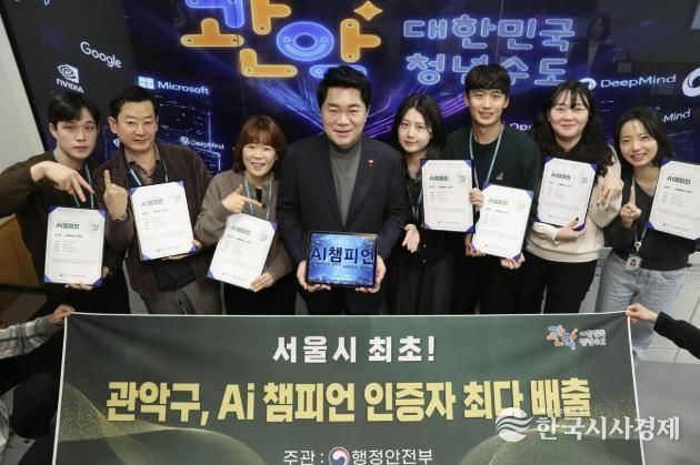 한국시사경제 이정이 기자 | 관악구가 행정안전부 주관 ‘인공지능(AI) 챔피언 인증 과정’에서 9명의 직원이 인증을 획득하는 성과를 달성했다. 이번 인증으로 구는 서울시 자치구 중 최초로 인공지능(AI) 챔피언을 배출하게 됐다.