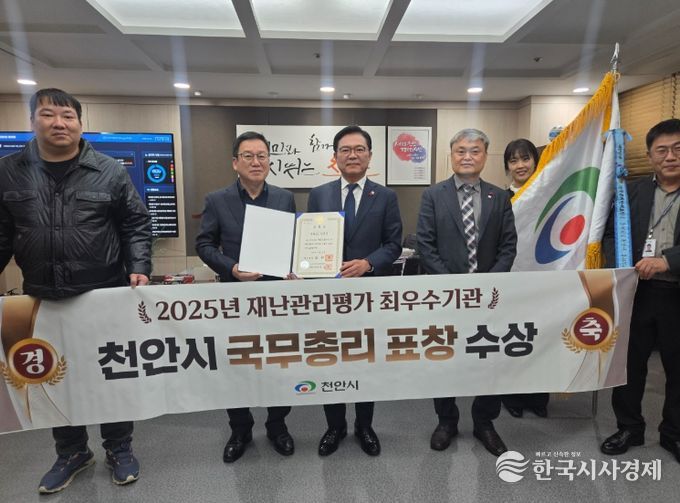 한국시사경제 충남취재본부 | 천안시가 행정안전부 주관 ‘2025년 재난관리평가’에서 우수기관에 선정돼 국무총리 표창을 받았다고 23일 밝혔다.