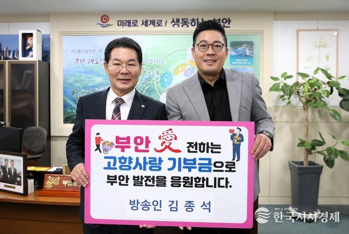 한국시사경제 김숙영 기자 | 부안군은 부안 출신 방송인 김종석씨가 2023년에 이어 2025년에도 고향사랑기부금 100만원을 기탁했다고 밝혔다.