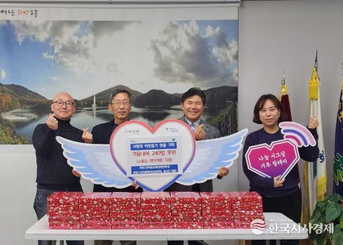 한국시사경제 경기북부취재본부 | 포천시 소흘읍 행정복지센터는 지난 22일, 한마음교회와 ㈜마른파이브가 지역 내 취약계층을 돕기 위한 겨울 내복 240벌을 기탁했다고 밝혔다.