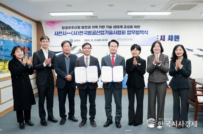 한국시사경제 윤광희 기자 | 사천시는 지난 23일 시청 열린시장실에서 사단법인 한국항공산업기술사협회와 항공우주산업 발전과 지역 기반 기술 생태계 조성을 위한 업무협약(MOU)을 체결했다.