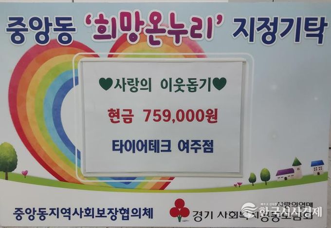한국시사경제 기동취재팀 | 타이어테크 여주점은 지난 23일 연말을 맞아 지역사회 취약계층을 돕기 위해 성금 75만9천원을 중앙동행정복지센터에 기탁했다.