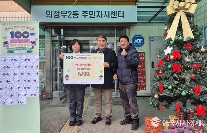 한국시사경제 경기북부취재본부 | 의정부시 의정부2동주민센터는 12월 23일 한국자유총연맹 의정부2동위원회가 ‘100일간 사랑릴레이 배턴 잇기’에 동참해 취약계층을 위한 성금 20만 원을 전달했다고 밝혔다.