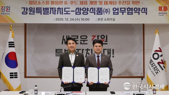 한국시사경제 권충언 기자 | 강원특별자치도는 12월 24일 도청에서 삼양식품(주)과 강원도 특성을 반영한 K-푸드 육성을 위한 업무협약을 체결했다고 밝혔다.