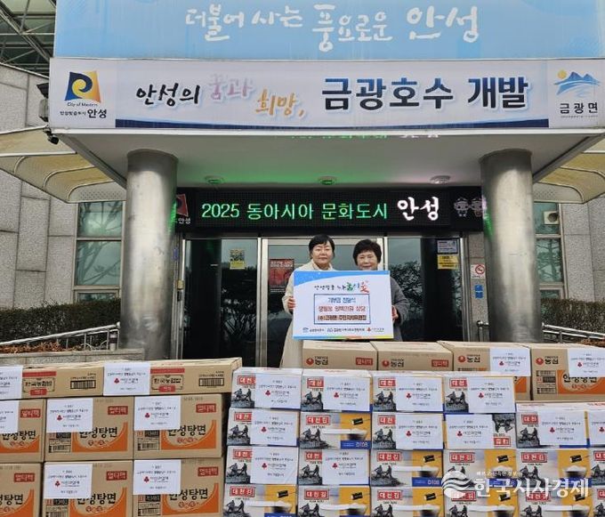 한국시사경제 경기취재본부 | 안성시는 12월 23일, 금광면 주민자치위원회 양영순 위원장이 겨울철 취약계층 가구의 따뜻한 겨울나기를 돕기 위해 라면, 김 등 생필품 100만원 상당을 금광면 행정복지센터에 기탁했다고 밝혔다.