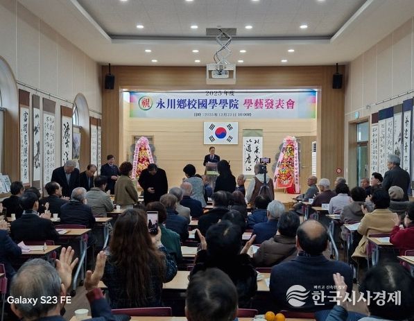 한국시사경제 경북취재본부 | 영천향교 국학학원(원장 이덕기)은 지난 23일 본원 3층 대강당에서 관내 단체장과 수강생 등 200여 명이 참석한 가운데 ‘2025년 정기 학예발표회’를 성황리에 개최했다.