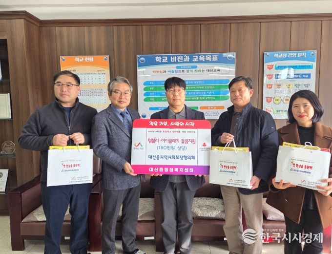한국시사경제 충남취재본부 | 대산읍지역사회보장협의체(민간위원장 김기혁)는 지난 12월 24일 대산초등학교 교무실에서 2026년 초등학교 입학생을 위한 후원물품 전달식을 가졌다.