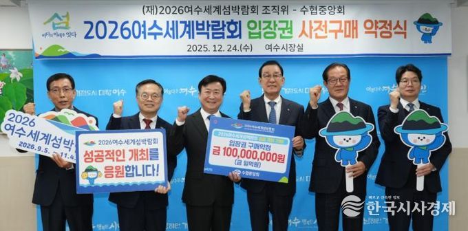 한국시사경제 전남취재본부 | (재)2026여수세계섬박람회조직위원회는 지난 24일, 수협중앙회와 섬박람회 성공개최를 위한 1억 원 규모의 입장권 구매약정을 체결했다고 밝혔다.