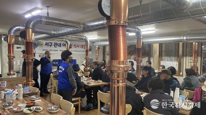 한국시사경제 김숙영 기자 | (사)바르게살기운동 서구협의회(회장 백창욱)는 지난 23일 연말을 맞아 지역 내 어르신 130명을 초청해 ‘어르신 특식데이’행사를 성황리에 개최했다. 이번 행사는 어르신들의 건강과 복지 증진을 위해 마련됐으며, 이날 행사에 참여한 어르신들은 든든한 식사와 함께 이웃과 정겨운 담소를 나누며 뜻깊은 시간을 보냈다.