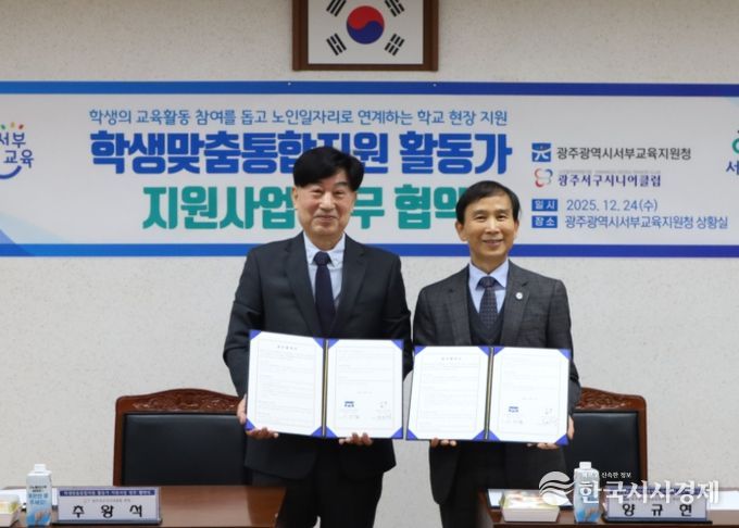 한국시사경제 광주취재본부 | 광주광역시서부교육지원청은 24일 본관 상황실에서 광주서구시니어클럽과 ‘학생맞춤통합지원 활동가 지원사업 업무협약’을 체결했다.