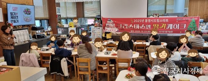 한국시사경제 문화팀 | 통영시 드림스타트는 지난 23일 광도면 소재 맛기찬딸기 농장에서 드림스타트 대상 아동 및 가족 25세대 50명을 대상으로 연말 취약아동 정서ㆍ문화 지원을 위한 크리스마스 기념 딸기케이크 만들기 체험을 실시했다.