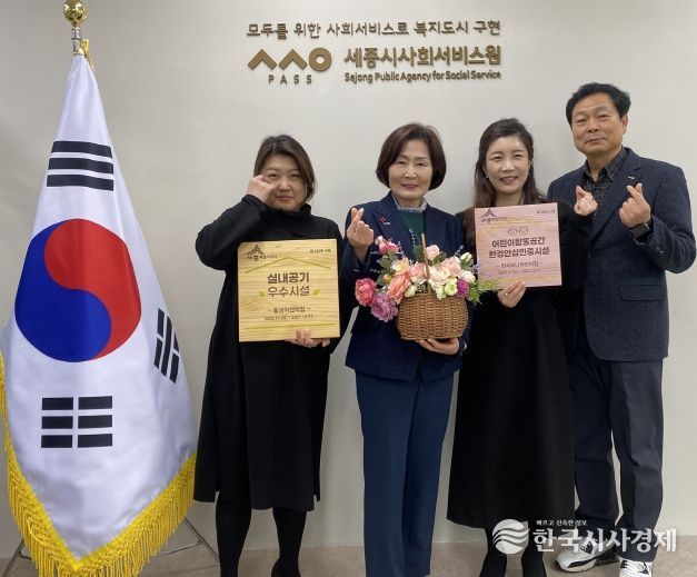 한국시사경제 세종취재분부 | 세종시사회서비스원(원장 김명희)이 운영하는 충녕어린이집과 반곡하나어린이집이 세종특별자치시로부터 지난 19일 ‘2025년 실내 공기질·어린이활동공간 우수시설’로 지정됐다.