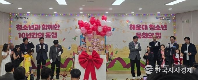 한국시사경제 김태훈 기자 | 해운대구는 지난 20일 ‘청소년과 함께한 10년의 성장’이라는 주제로 해운대청소년문화의집 개관 10주년 기념행사를 성황리에 개최했다. 행사에는 청소년과 지역주민 300여 명이 참여해 다양한 프로그램을 즐기며 청소년과 지역사회가 함께하는 축제의 장을 만들었다.
