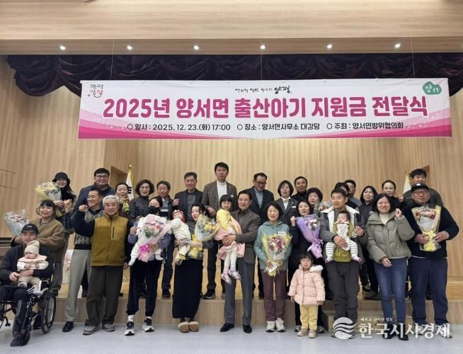 한국시사경제 기동취재팀 | 양서면 방위협의회는 지난 23일 저출산 극복과 출산 장려 분위기 조성을 위해 ‘2025년 양서면 출산아기 지원금 전달식’을 개최했다.