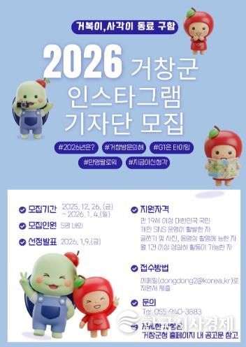 한국시사경제 경남취재본부 | 거창군은 지역 관광자원의 매력을 생생하게 전달하고 온라인 홍보를 강화하기 위해 ‘2026년 거창군 인스타그램 기자단’을 모집한다고 26일 밝혔다.