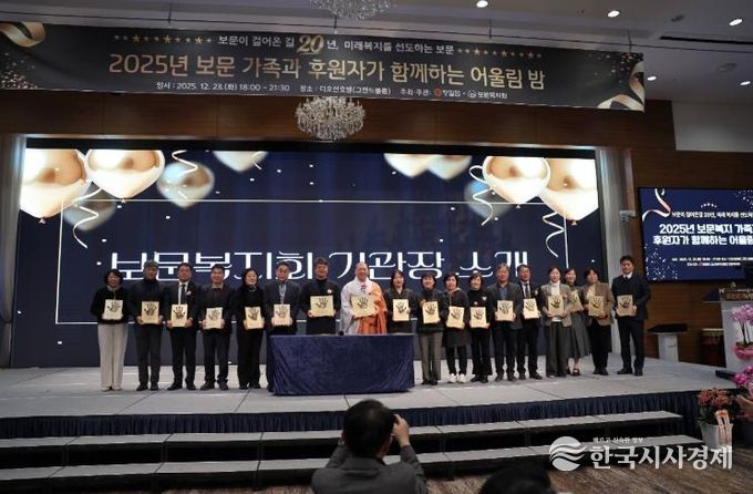 한국시사경제 전남취재본부 | 사회복지법인 보문복지회는 설립 20주년을 기념해 지난 12월 23일 디오션호텔 그랜드볼룸에서 ‘2025년 보문 가족과 후원자가 함께하는 어울림 밤’을 개최했다.