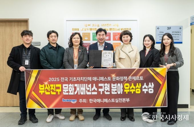 한국시사경제 부산취재본부 | 부산진구는 23일 강원도 원주시 상지대학교에서 열린 ‘2025 매니페스토 문화정책 콘체르토’에서 문화거버넌스 구현 분야 우수상을 수상했다.