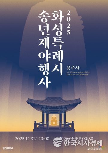 한국시사경제 이정이 기자 | (재)화성시문화관광재단은 시민과 함께 2025년을 마무리하고 2026년을 맞이하는 '2025 화성특례시 송년 제야행사'를 오는 12월 31일 수요일 오후 8시부터 용주사 일원에서 개최한다.