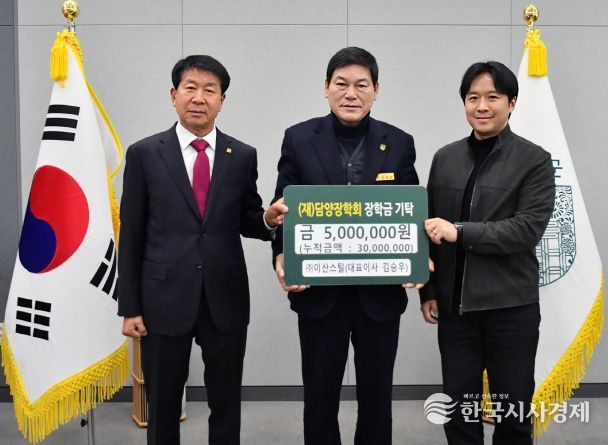 한국시사경제 권충언 기자 | (재)담양장학회는 지난 26일 ㈜이산스틸(대표이사 김승우)에서 5백만 원을, ㈜고서삼화자원(대표 이형수)에서 2백만 원을 기탁했다고 밝혔다.