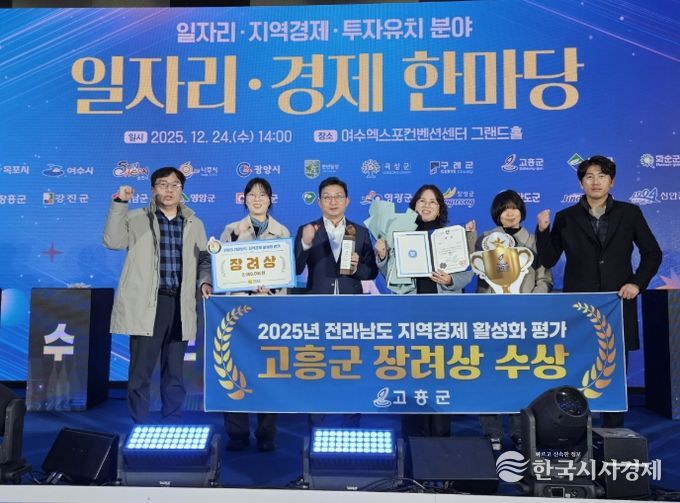 한국시사경제 전남취재본부 | 고흥군은 2025년 전라남도 일자리경제 한마당 행사 시상식에서 ‘2025년 지역경제 활성화 평가’ 장려상을 수상해 기관 표창과 함께 200만 원의 시상금을 받았다고 29일 밝혔다.