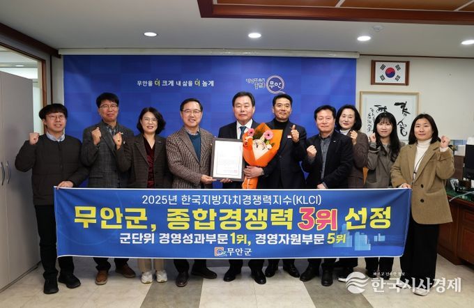 한국시사경제 권충현 기자 | 전남 무안군은 ‘2025년 한국지방자치경쟁력지수(KLCI)’ 평가에서 전국 군 단위 종합경쟁력 3위(경영자원 부문 5위, 경영성과 부문 1위)로 선정됐다.