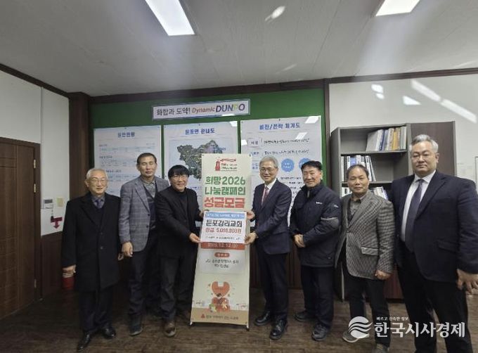 한국시사경제 충남취재본부 | 아산시 둔포감리교회는 지난 30일 둔포면 행정복지센터를 방문해 ‘희망2026 나눔캠페인’ 성금 500만 원을 전달했다.