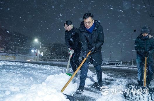 또한 시민 불편을 최소화하기 위해 2일 오전 6시부터 전 직원을 비상 소집해 담당 구역별로 배치하고, 인도와 버스승강장, 횡단보도 등 보행자 통행이 잦은 구간을 중심으로 인력 제설을 병행했다.
