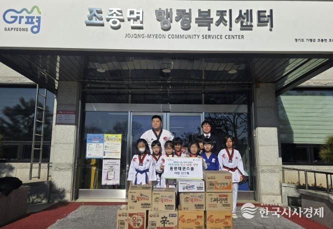한국시사경제 경기북부취재본부 | 가평 동원태권스쿨은 지난해 연말 조종면 행정복지센터를 방문해 라면 377개를 기탁하며 이웃사랑을 실천했다.