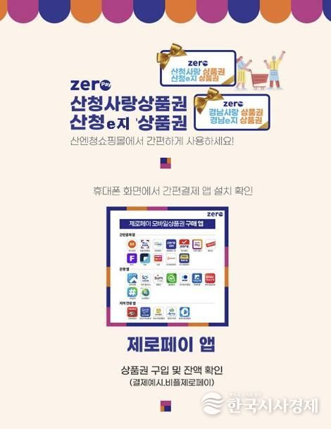 한국시사경제 윤광희 기자 | 산청군은 7일 온라인 전용 산청사랑상품권‘산청e지’를 발행했다고 밝혔다.